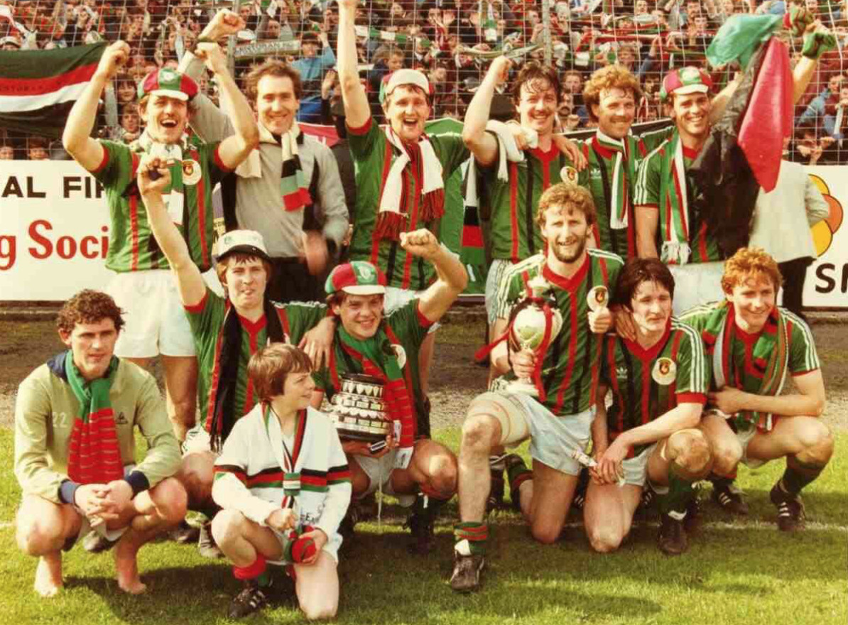 But then everything changed. They defeated Linfield in replays in two of the next three finals (‘83 & ‘85), the second of which was to lead to four consecutive Irish Cup triumphs, an unprecedented feat, never again repeated. They also tagged on another success in 1990 after losing as ‘nailed-on’ favourites to Carrick Rangers in the 1989 semi-final, and four more in the 8 years between 1996 and 2004.